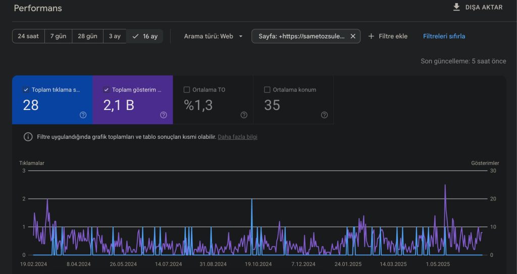 Bu tamamen bana bağlı bir durum; ama SEO ile ilgili yazıları çok yazmaya vaktim olmuyor. Vakit buldukça ya mevcut makalelerimi güncelliyorum ya da ilgi alanlarım özelinde içerikler üretmeye çalışıyorum: