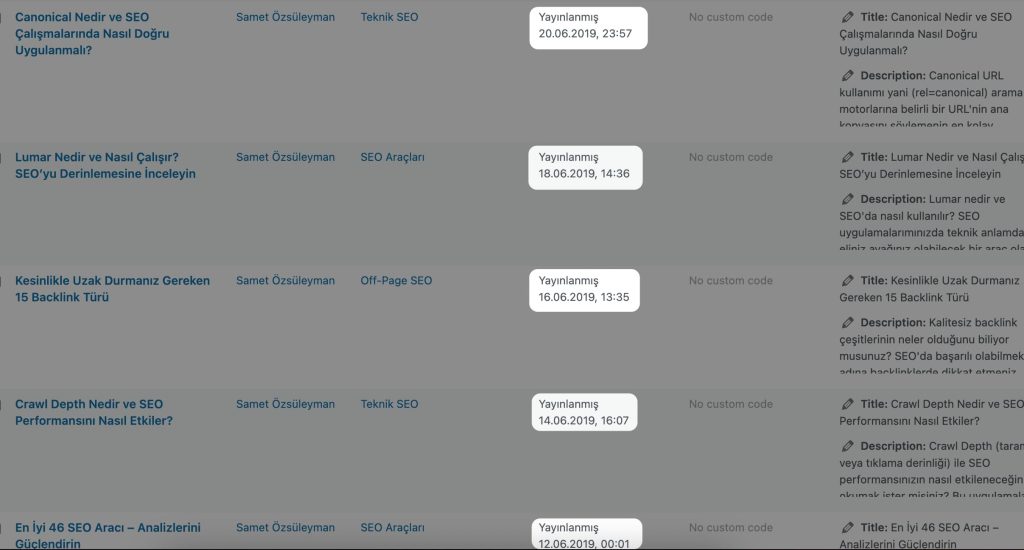 Bloglamaya başlarken aklımda hep “ya daha iyisini yazabilirim” düşüncesi hiç çıkmadığı için öncesinde yazıları aktif etmek istemiyordum. Benim gibi işi SEO olanlar her zaman optimizasyon yapmak istediği için mutlaka bir kusur buluyordunuz kendi yazdığınız yazılarda. O yüzden size önerim yazınız baktınız iyi birkaç eksiği varsa yayınlayın beklemeyin, sonrasında o içeriği tekrar düzenlemek çok zor oluyor.